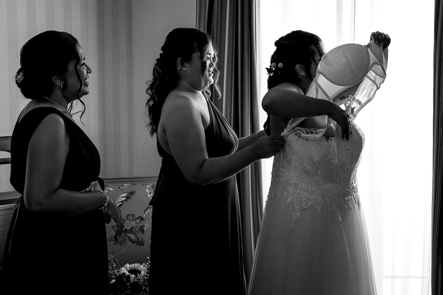 Tanto Nathalie como Gonzalo decidieron vestirse con su familia. Ella elegió el elegante hotel boutique Meliá Recoletos, donde pudo vestirse entre risas y champán con su familia. Y él se preparó en una de las precisosas habitaciones del Zenit Imperial, un hotel emplazado en un edifício histórico del siglo XVI. ¡Todo un acierto!